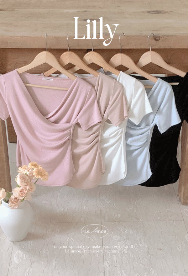 [🌿반팔티/휴양지룩][MADE] 릴리 브이넥 랩 셔링 반팔 티셔츠