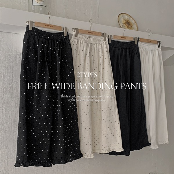 [2타입/포인트룩💞] 데일리모어 투핀턱 프릴 와이드 밴딩팬츠(44~100) (빅사이즈팬츠-와이드팬츠-프릴팬츠-도트팬츠-밴딩팬츠-코튼팬츠-체형커버-데일리룩-러블리-면바지)