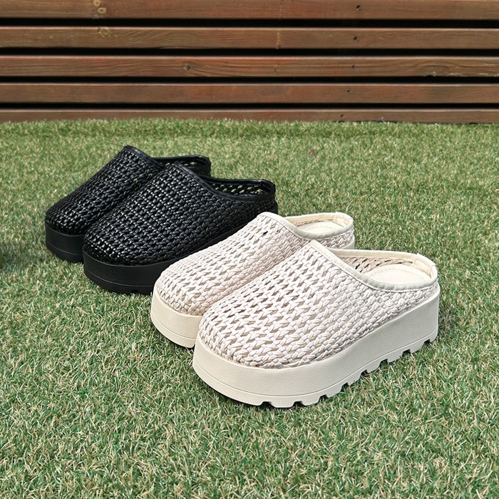 크리번 짜임 키높이 통굽 뮬 블로퍼 슬리퍼(5cm)
