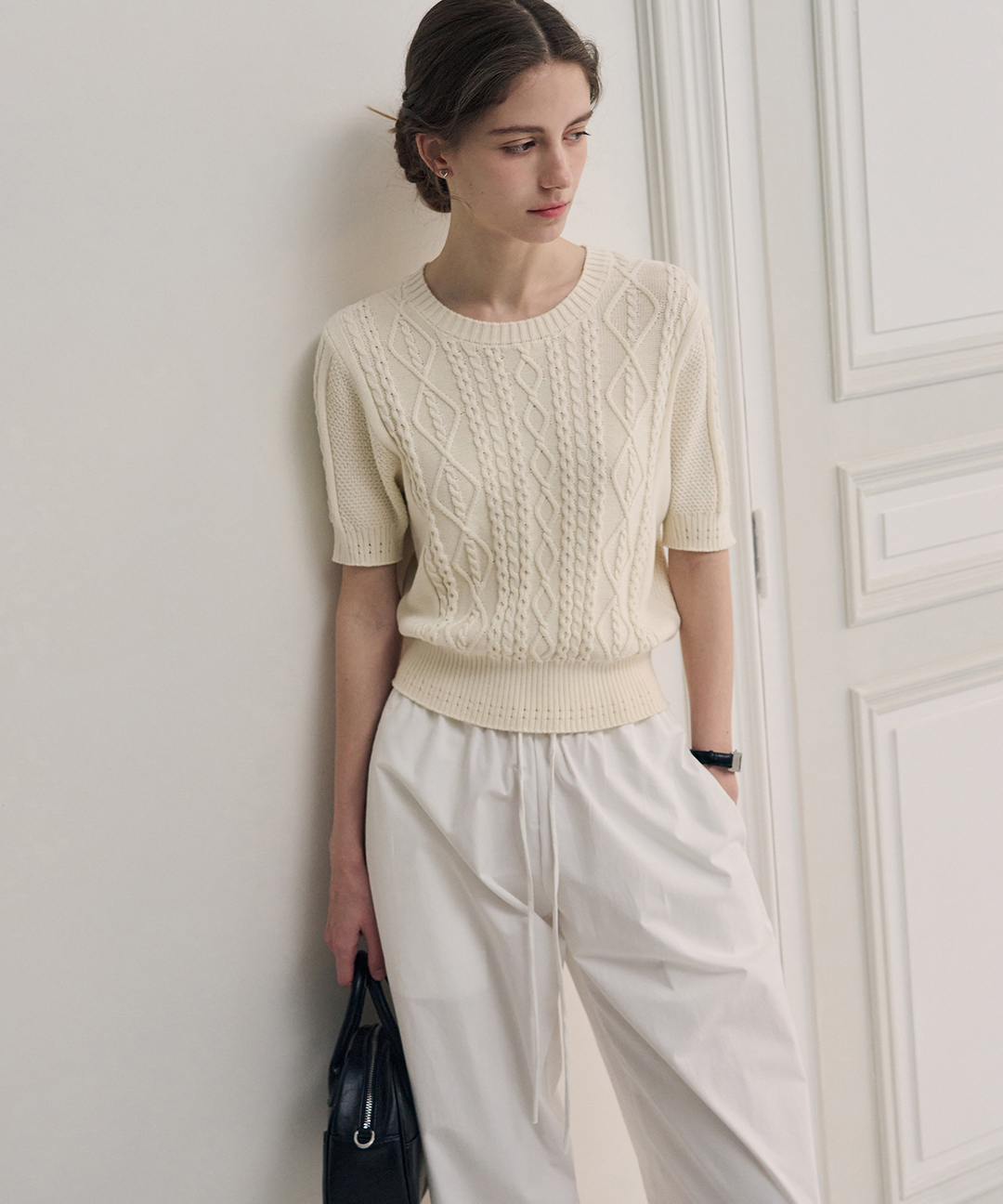 스카시 케이블 반팔 니트
