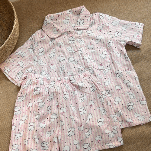 주주 퍼피 스트라이프 순면 여름 반팔 잠옷 세트 (1color)