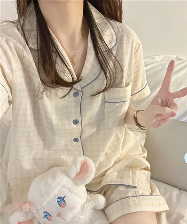 반팔 반바지 데일리 귀염뽀짝 밀크체크 상하세트 파자마 여름 여성 파자마 세트 (3478)