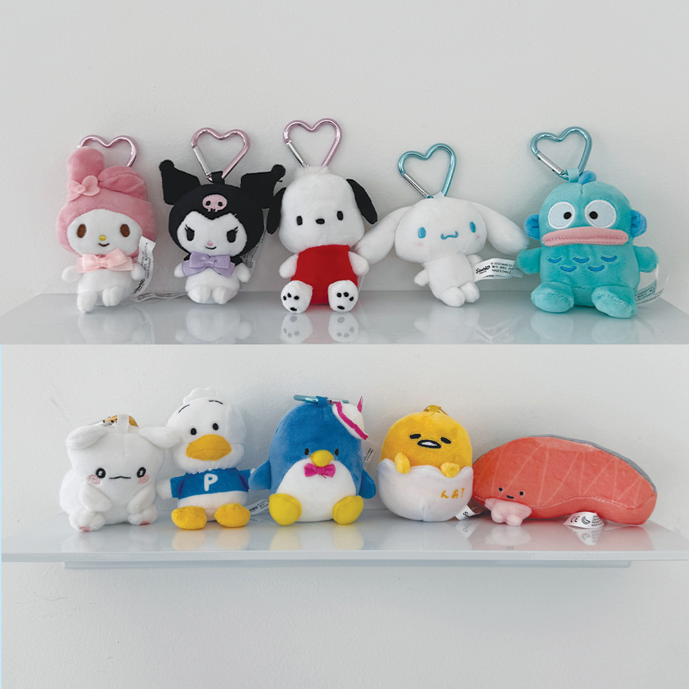 산리오 인형 하트 카라비너 키링 10종 [정품 캐릭터 한교동 포차코 시나모롤 쿠로미 마이멜로디 포챠코 구데타마 시나몬롤 키리미짱 턱시도샘 가방 열쇠 고리 키홀더 마스코트 굿즈]