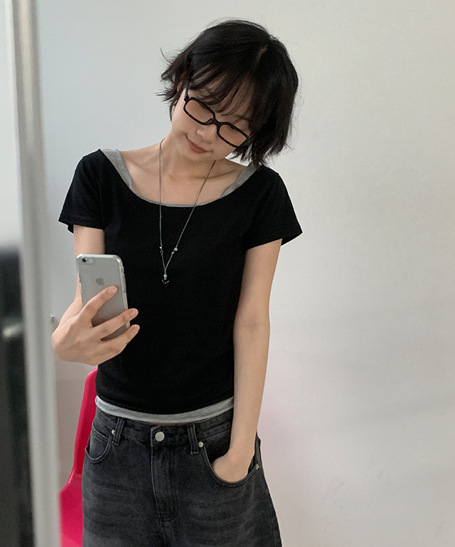 [MADE] 미아 와이드넥 레이어드 반팔 티셔츠