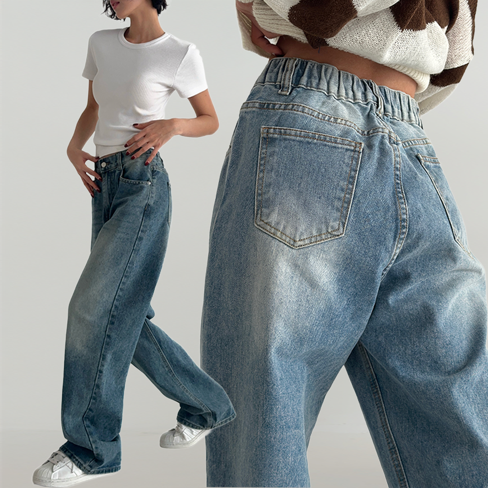 기장선택 보이프렌드핏 뒷밴딩 베이직 데님팬츠 와이드 일자청바지 빅사이즈 가을 간절기