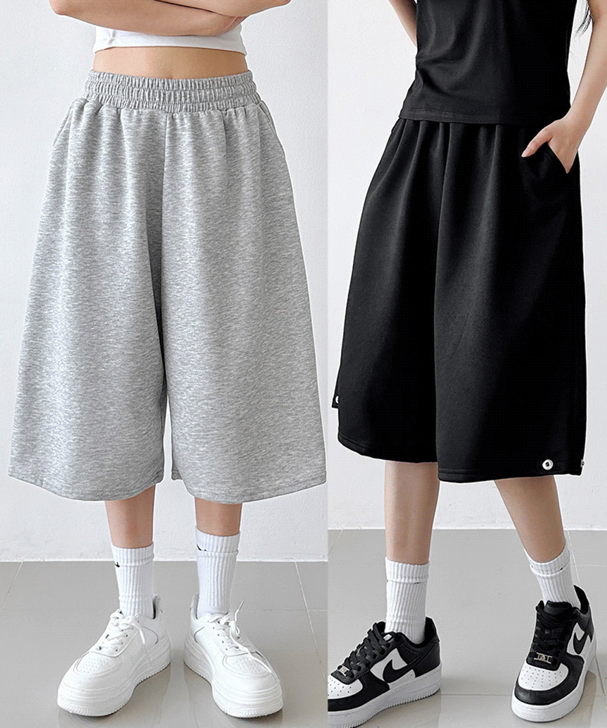[깔끔핏] 스냅 버튼 버뮤다 반바지 트레이닝 비조 스웻팬츠 편한 여름 오버 하프 6부 남녀공용
