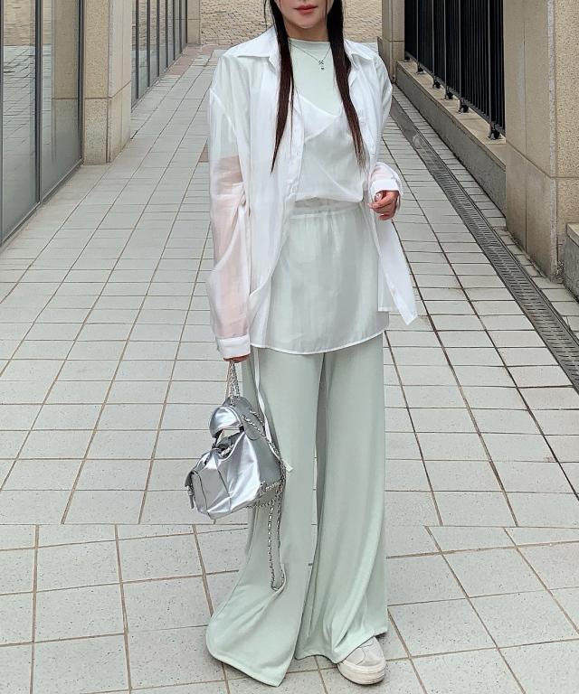 [아우룸] 시스루 오버핏 살안타템 루즈핏 실키 여름 씨티 남방