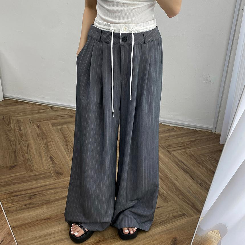 스트라이프 이중 오비 배색 와이드 슬랙스 2color