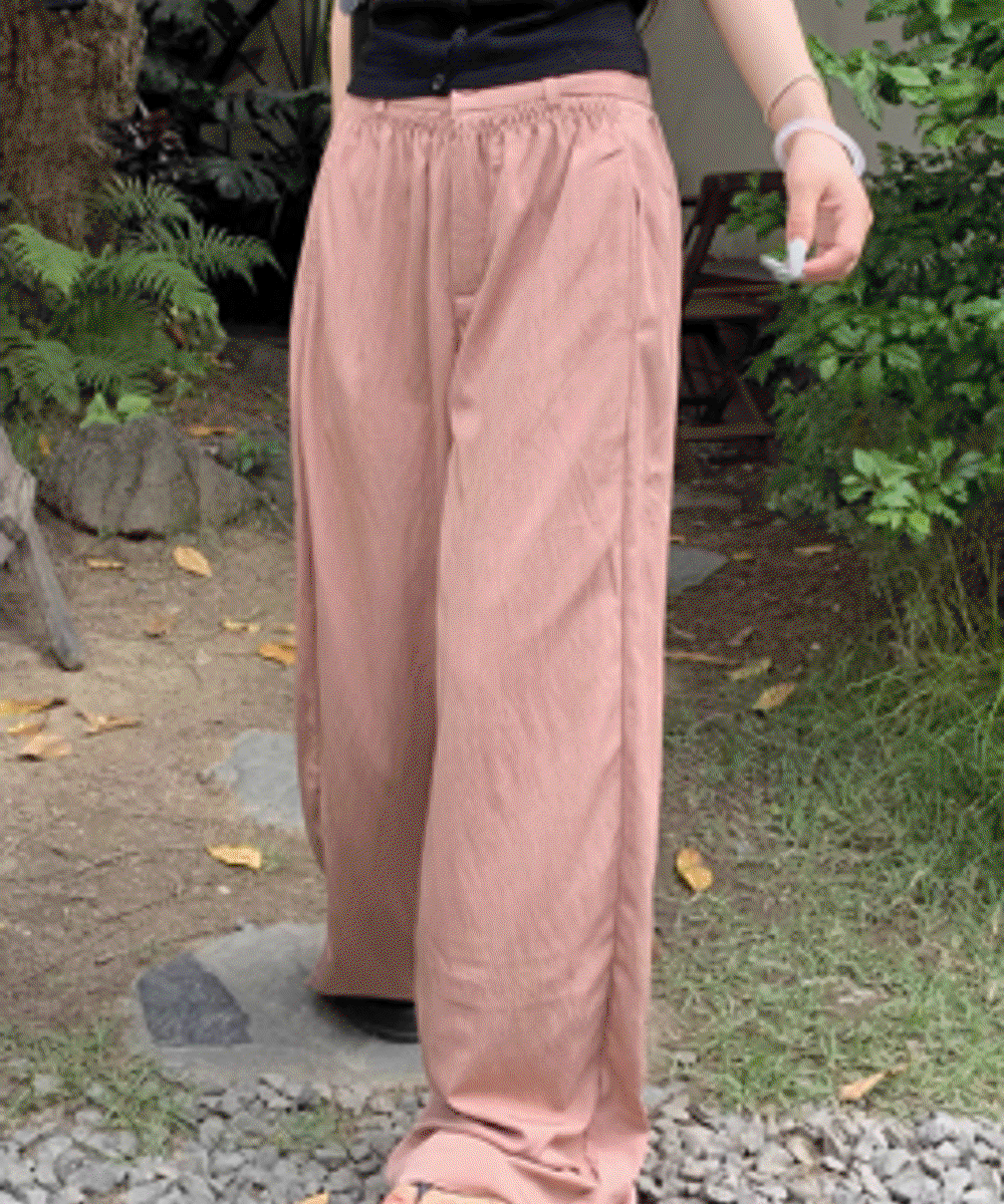 [최저가/퀄대박/대량입고] 찰랑 와이드 팬츠 밴딩 부츠컷 일자 나일론 루즈핏 3color