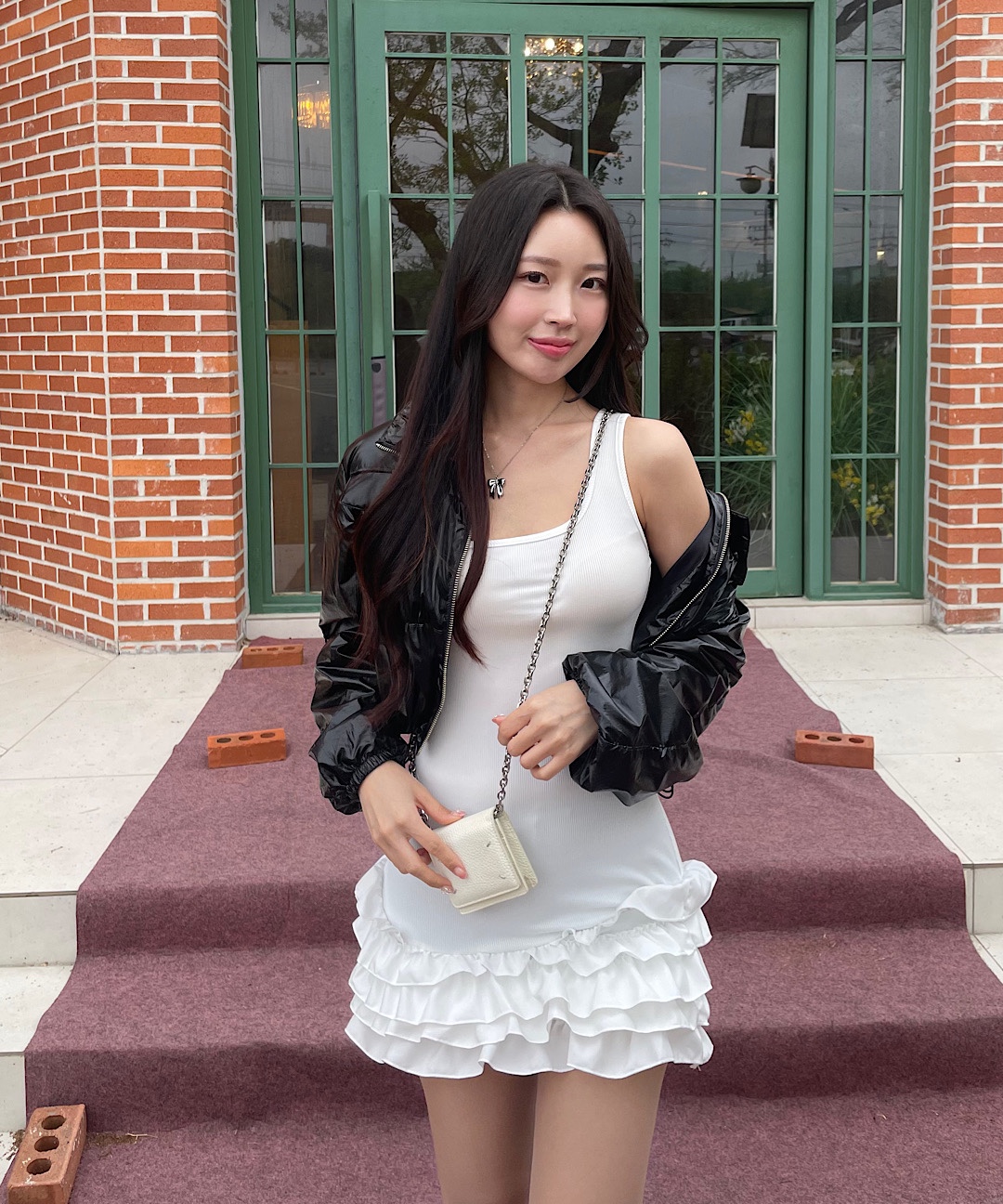 [최저가🔥/고퀄✨🖤/스판짱] 프릴 나시 레이어드 캉캉 민소매 미니 원피스 - 2 color