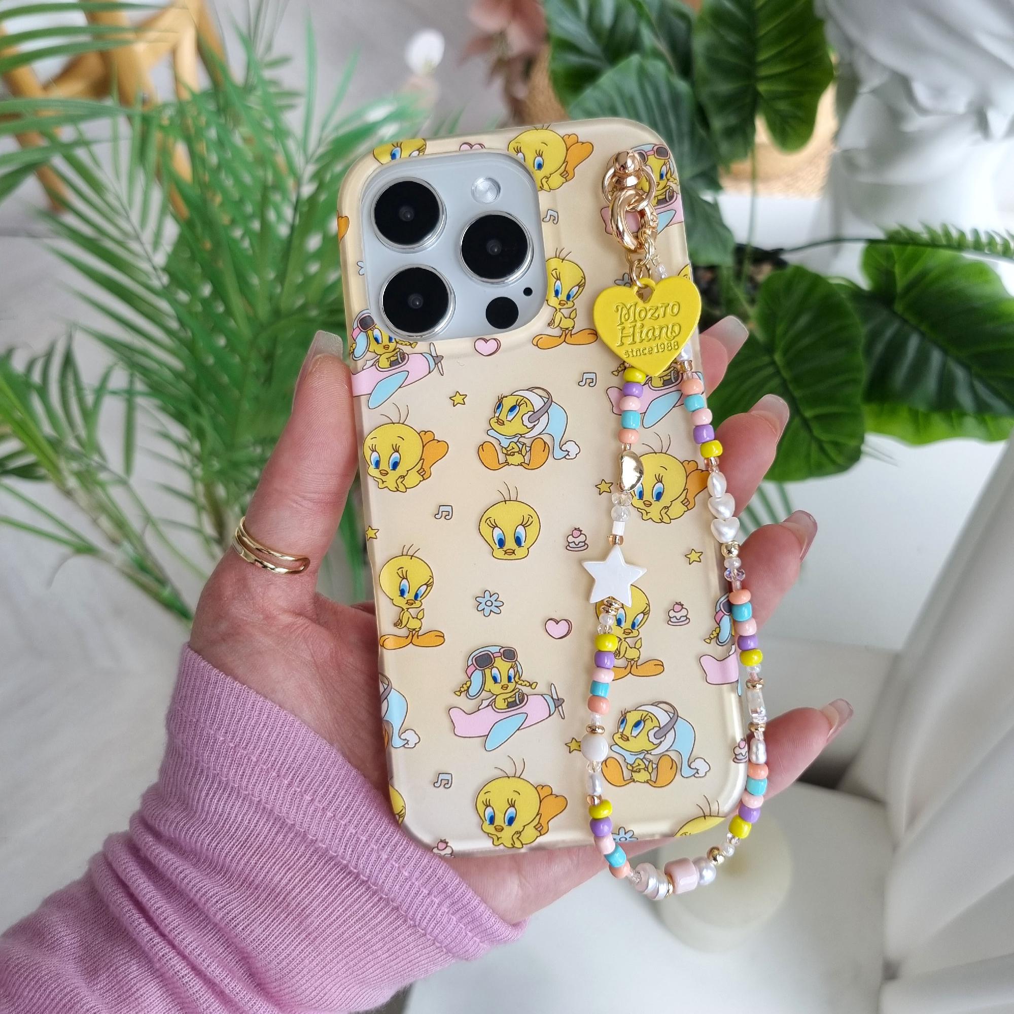 트위티케이스💛 아이폰16프로케이스 스트랩 병아리 무광 노랑 캐릭터 키치 귀여운 폰케이스