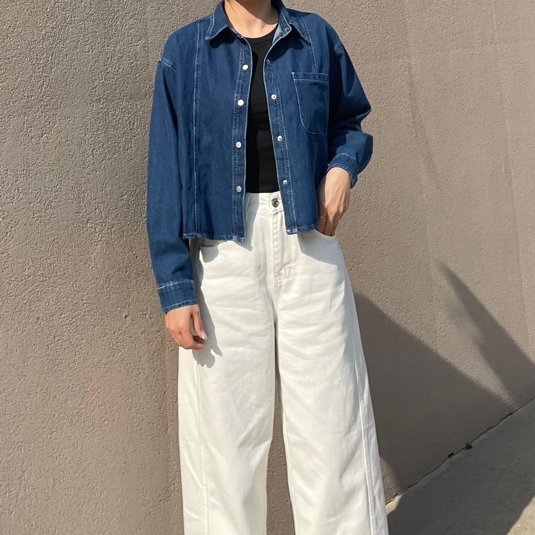 🌸[주문폭주]🚀청남방 크롭 데님셔츠 여성청남방 2color