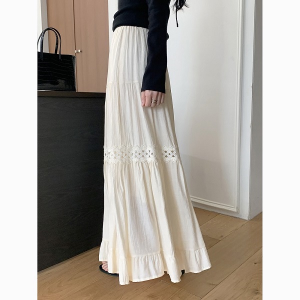 펀칭 레이스 봄 여름 롱 플레어 캉캉 스커트