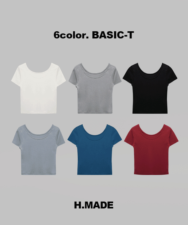 MADE #13340 투웨이 U넥 쫀쫀스판 소프트 크롭 반팔 티셔츠 : 6color