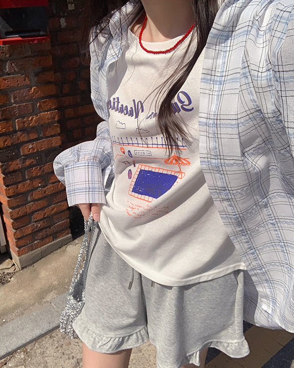[살안타템]아쿠아 여름 린넨 루즈핏 체크 셔츠