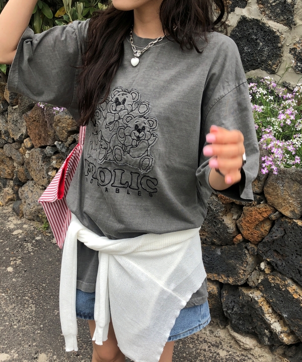 [피그먼트워싱/고퀄✨] 버디베어 오버핏 박시핏 레터링 여름 반팔 티셔츠 3 color