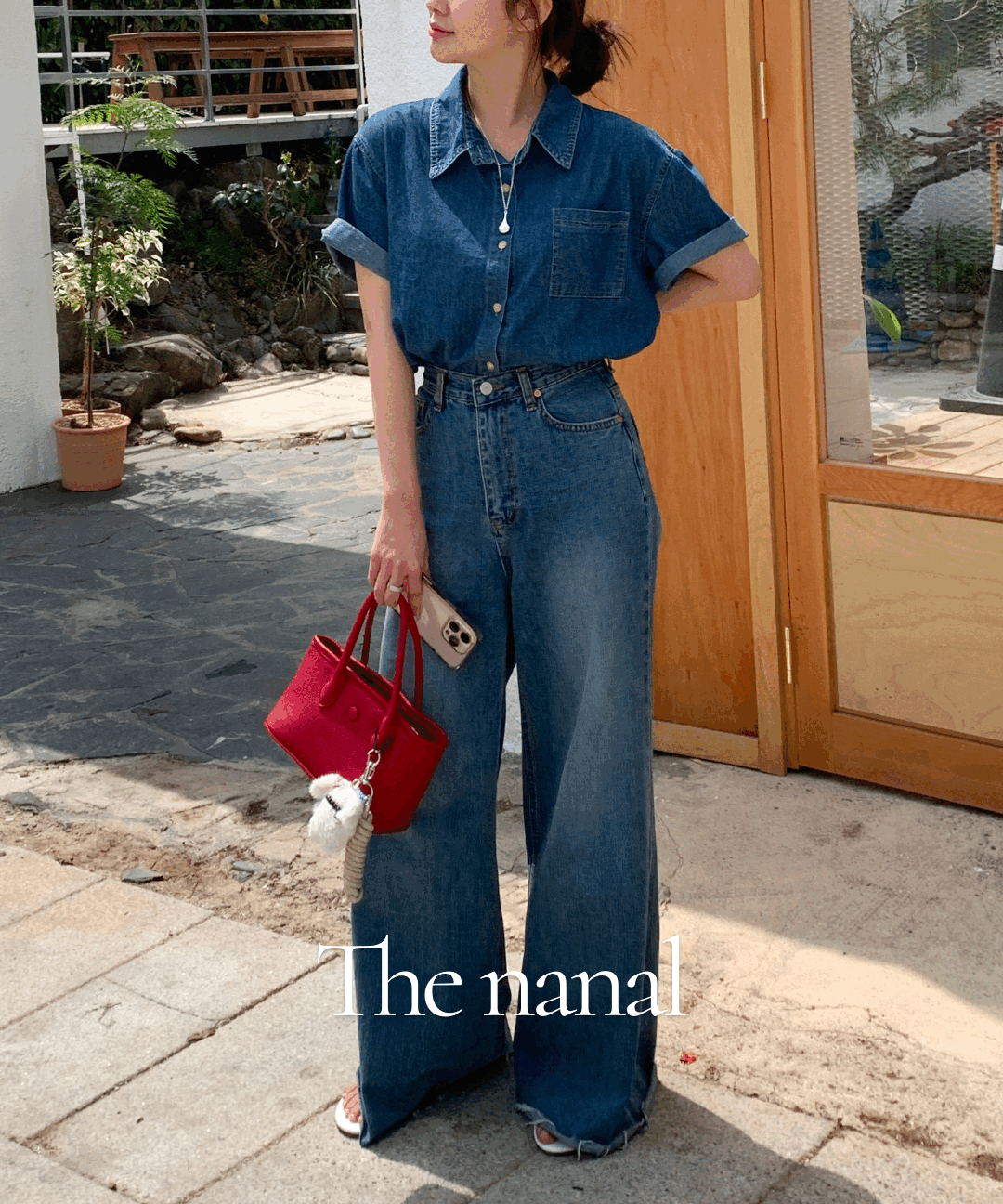 [모델소장][S-L] 트라이 a라인 와이드 워싱 데님 팬츠 청바지
