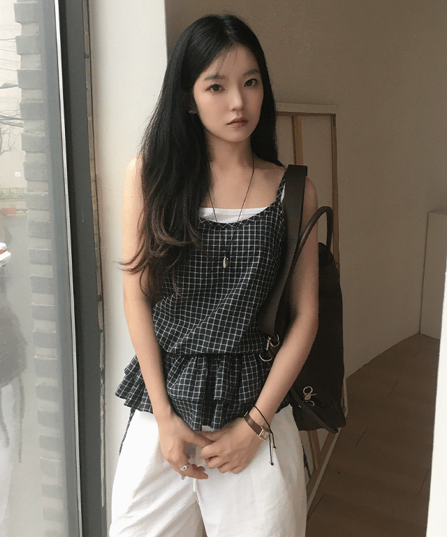 싸인 체크 뷔스티에 나시 블라우스 (2color)