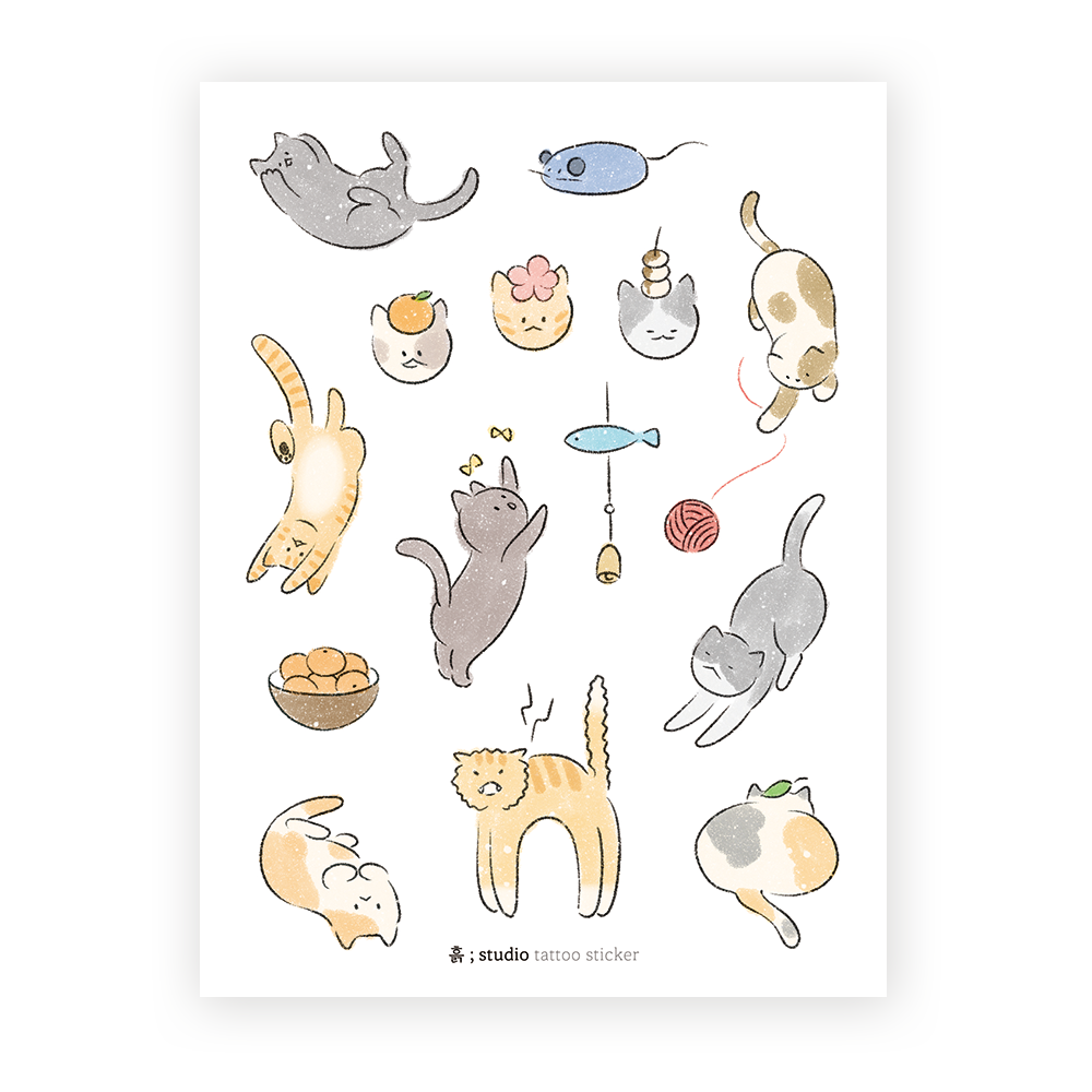 [KC인증]고양이캐릭터 고양이굿즈 포인트악세사리 해외여행 필수템 페스티벌 공연 축제 코디 아이템 오리발스티커 컬러 미니 귀여운 고양이 타투스티커_no.46 냥이의 하루 Medium