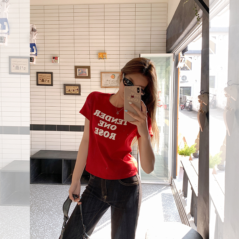 라운드 배색 레터링 베이직 반팔 티셔츠 다히다EK869