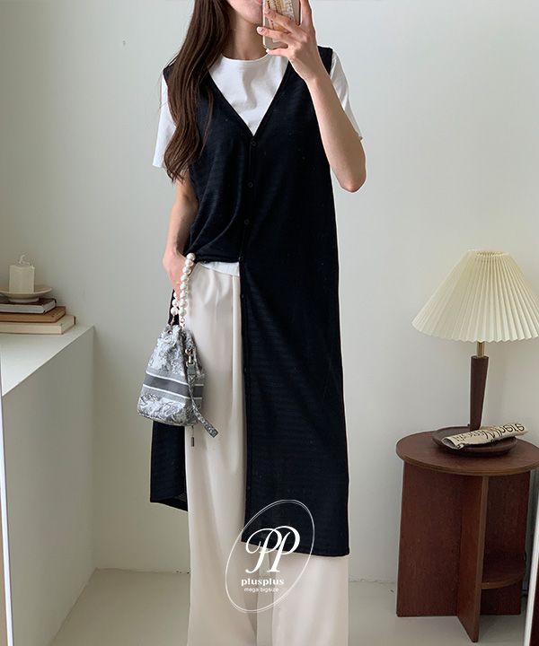 [~5XL/빅사이즈] [데일리룩] 단추 여밈 베이직 브이넥 롱 베스트
