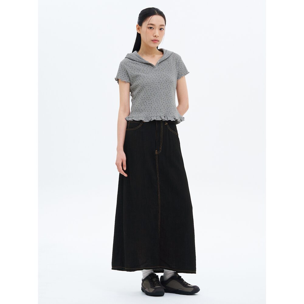 주름 레이온 롱 스커트 블랙 (355427LP55)