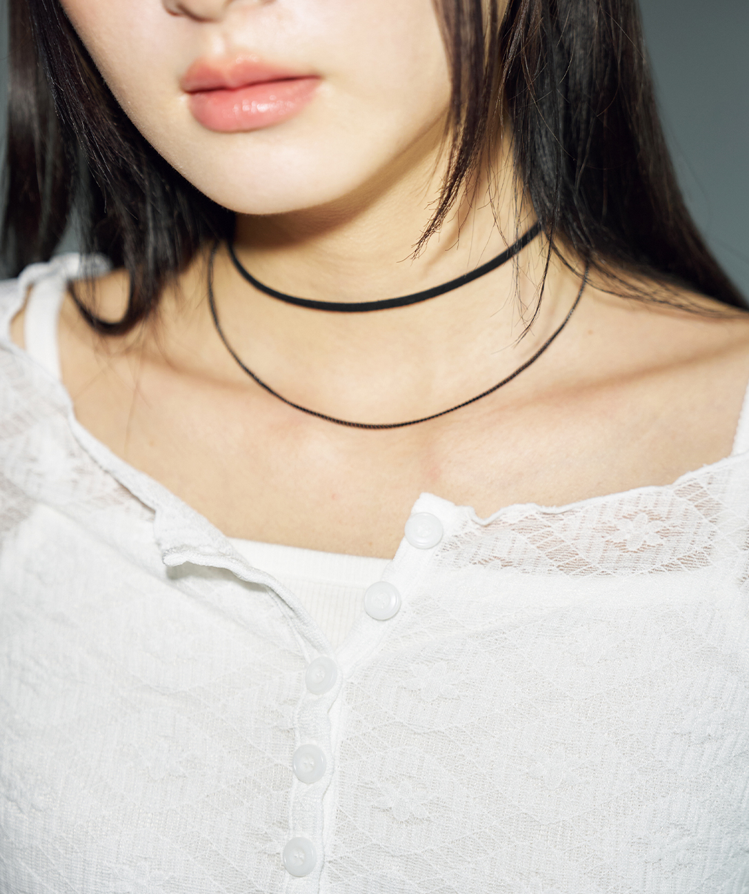원 포인트 넥 레이스 [제트 블랙]