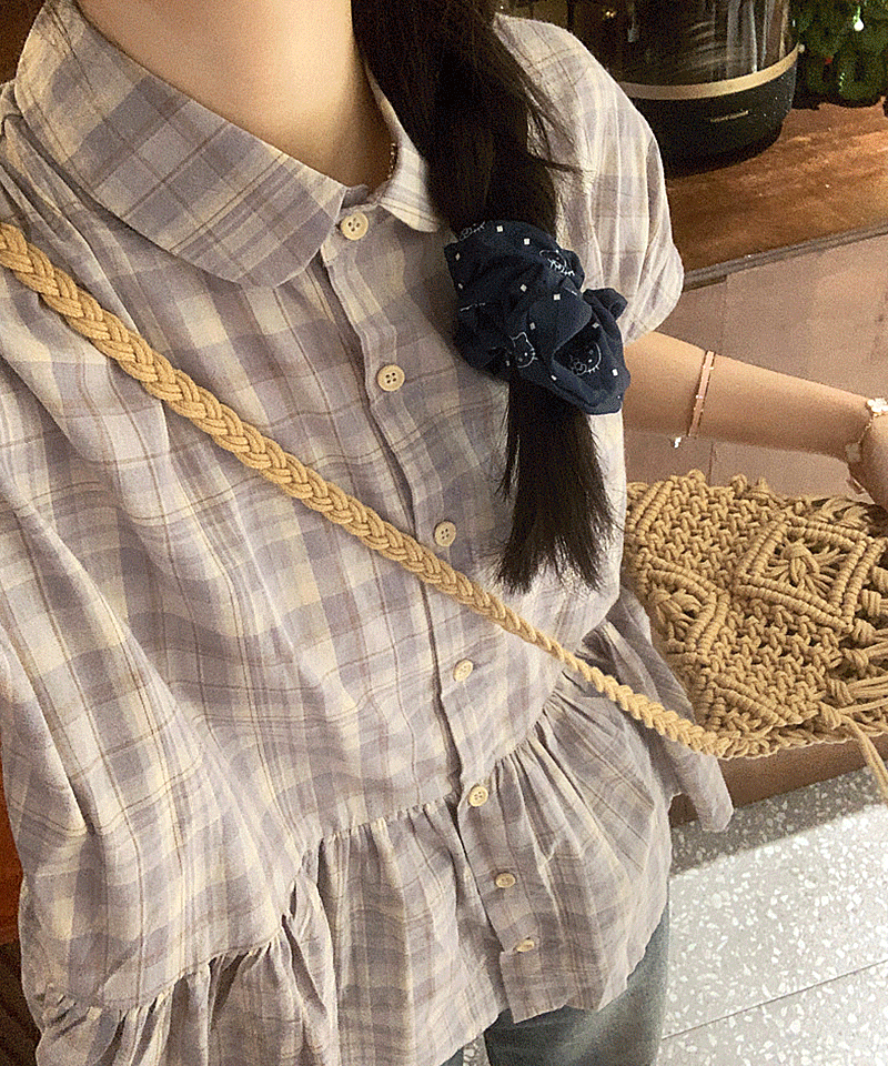 [연보라/데일리/꾸안꾸🧸] [썸머🍉] 레바노 셔링 체크 카라 반팔 블라우스