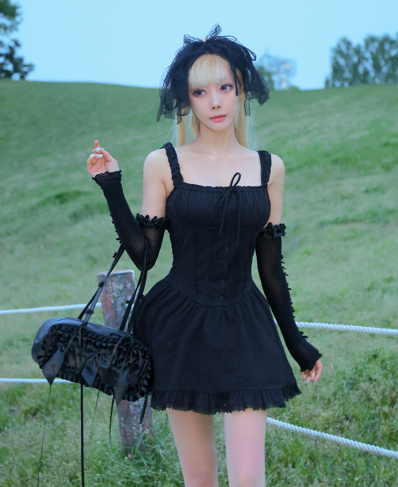[당일출고] 박하사탕 스모크라인 요정핏 미니 나시원피스 (여름,바다,휴양지,데이트룩,아이돌룩,청초,소녀스러운,스퀘어넥,셔링)