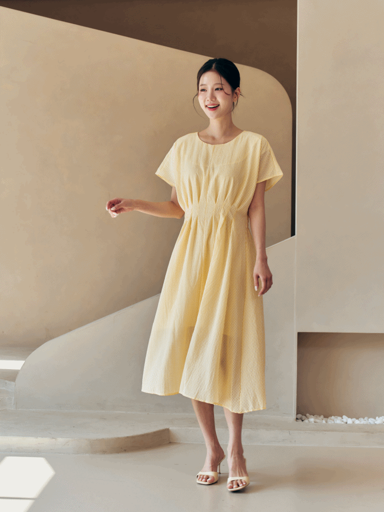 레몬에이드 깅엄 체크 패턴 롱 원피스