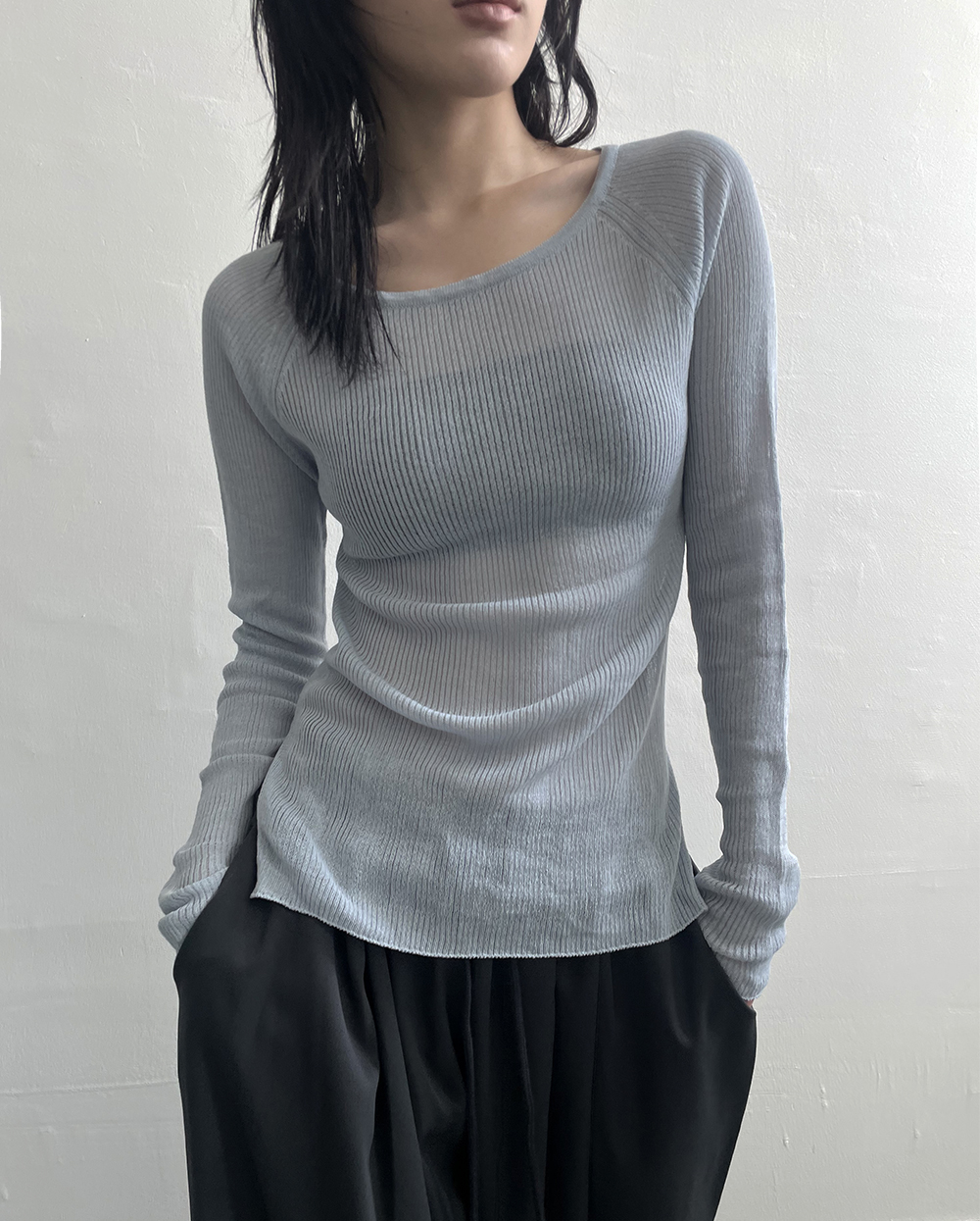 위피 입술넥 긴팔 니트 (5color) 시스루 슬릿 슬림 여름 니트 여리핏