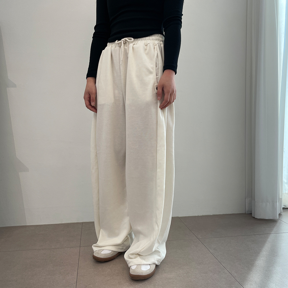 와이드 트레이닝 밴딩 팬츠 비조 사이드 스냅 버튼 하이웨스트 롱팬츠 (크림)