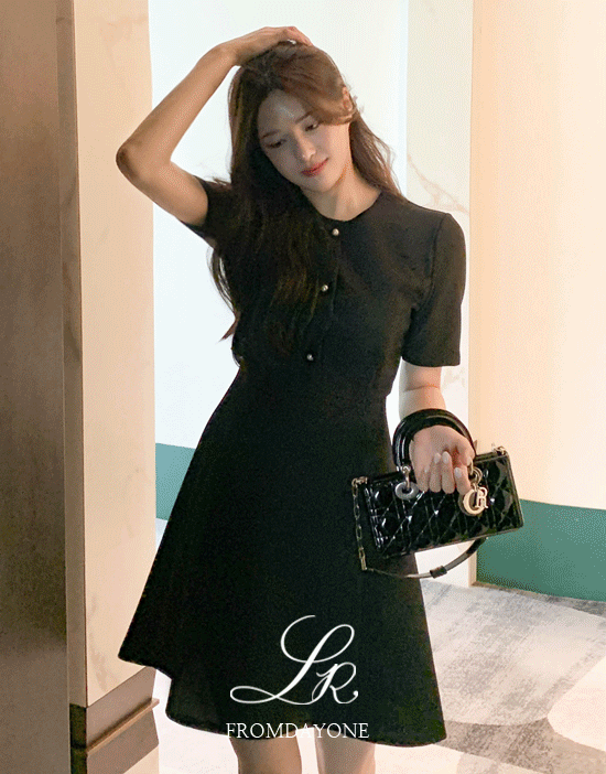 Made)르블룸 셋업 트위드 미디원피스(반팔/라운드넥/플레어/A라인/하객룩/격식룩/데이트룩)