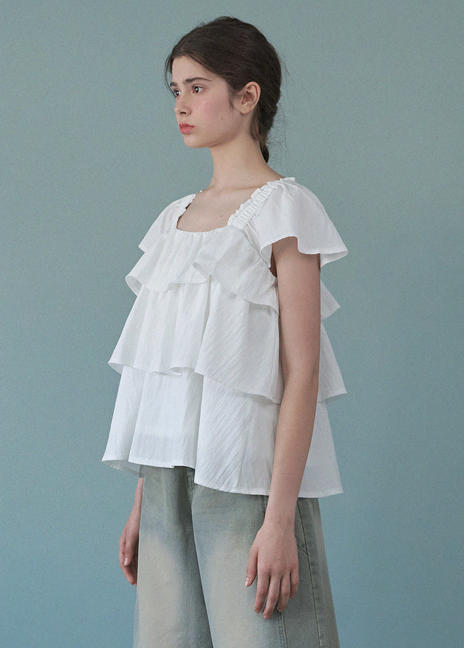 [44-120] Calista Frill Blouse 칼리스타 프릴 블라우스 (여름-데이트룩-데일리룩-러블리룩-바캉스룩-여행룩-캠퍼스룩-장마룩-블라우스-프릴-스퀘어넥-빅사이즈-자체제작)