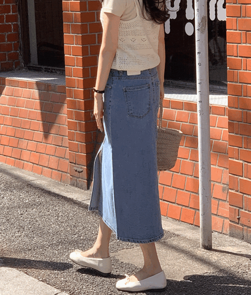 르쥬데님스커트 1color 데일리룩/러블리/데님스커트/청치마/롱스커트/롱데님스커트/트임스커트/트임데님스커트/캐주얼룩