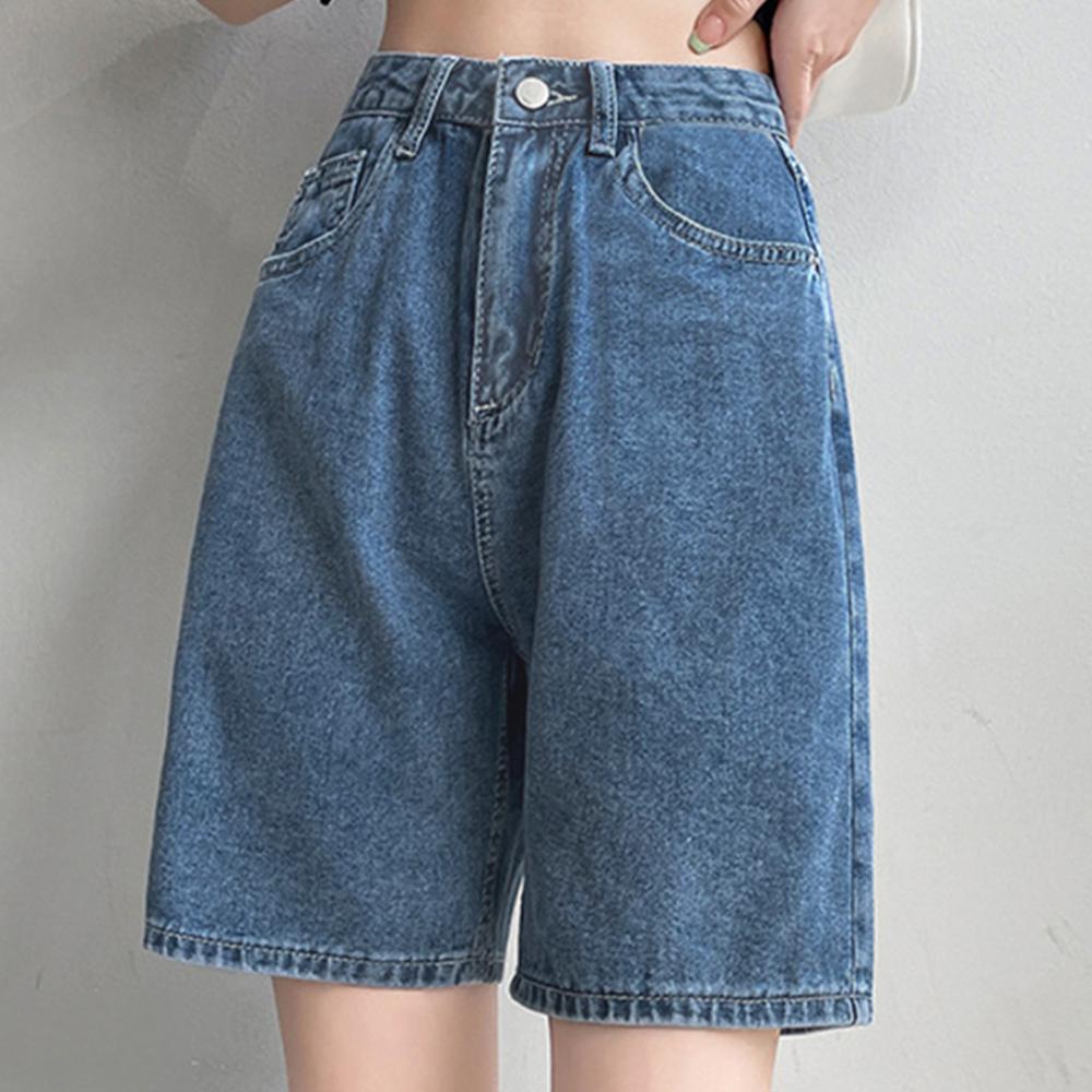 여성 봄 여름 데님 청 버뮤다팬츠 와이드 통넓은 4부 루즈핏 하프 통 반바지