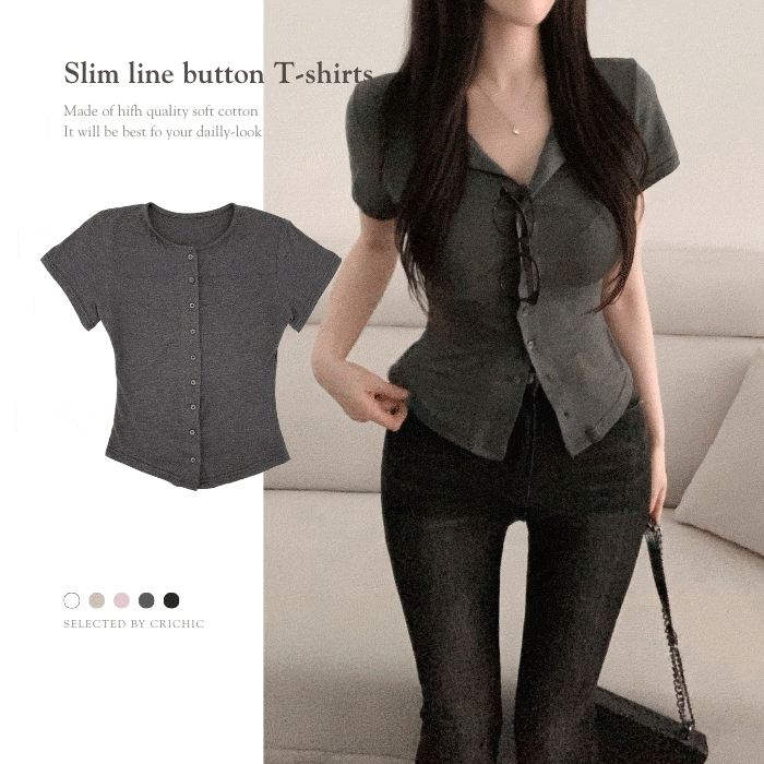 [ 뼈팔/잘록허리핏 ] 후들후들 딱붙는 셔츠스타일 슬림핏 레이온 반팔티셔츠