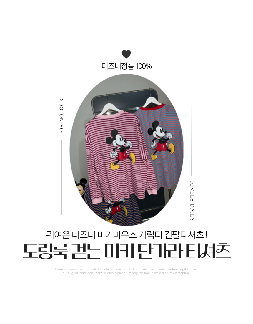 [🌠디즈니정품💭/루즈핏❤️/도링룩단독🤸] 미키 스트라이프 긴팔 티셔츠 미키마우스 캐릭터 단가라티 박스티 (3color)
