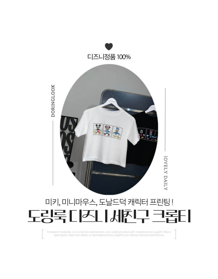 [🌠디즈니정품💭/44-66❤️/도링룩단독🤸] 디즈니 세친구 크롭티 미키 미니마우스 도날드덕 반팔티 캐릭터 반팔 티셔츠 (2color)
