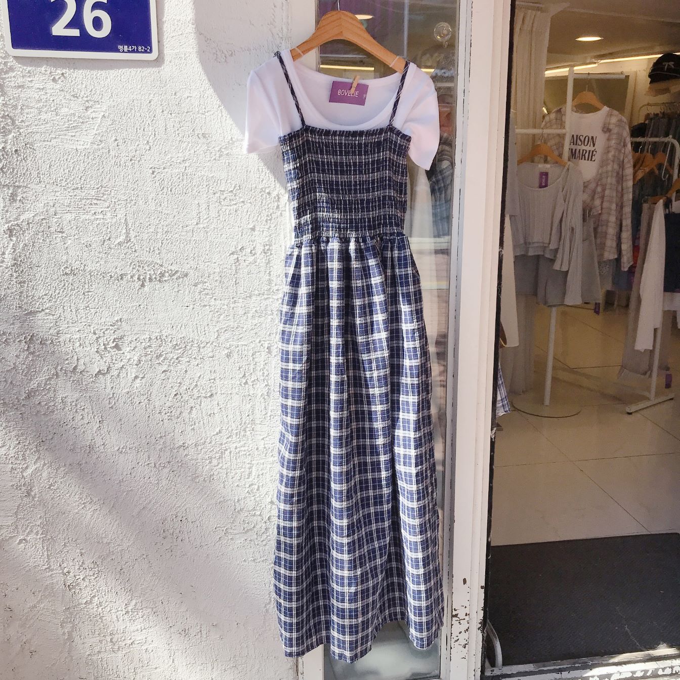 SS 체크 스모크 뷔스티에 나시 원피스