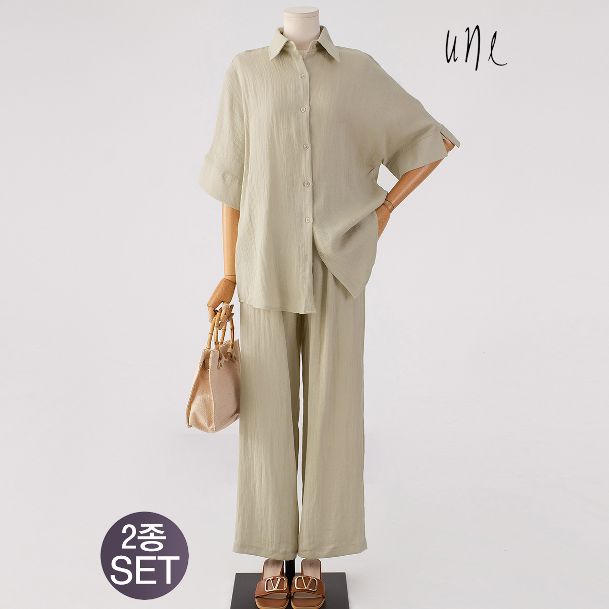 윈(une) [SET][린넨혼방]스타일리쉬 린넨롱셔츠+밴딩팬츠SET