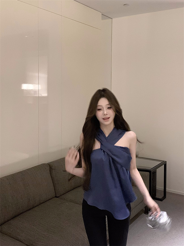 홀터넥 꼬임 셔링 나시 블라우스 핑크라벨PK788