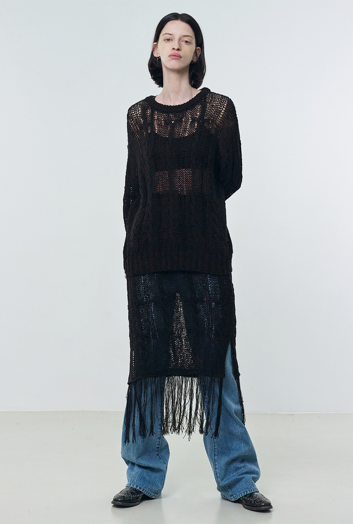 [더로켓] R SEE-THROUGHT CABLE KNIT SKIRT [2colors]