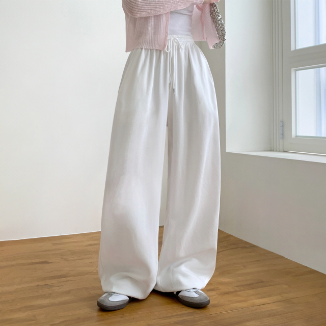 [3단기장/시원찰랑🧊] 쿨 리오셀 스트링 조거 바지 여름 와이드 허리밴딩 트레이닝 팬츠