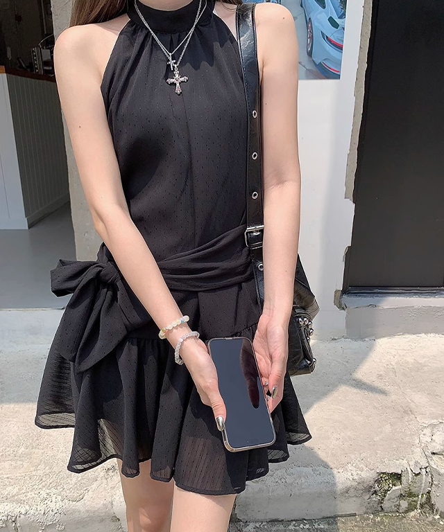 💖뮬리 홀터넥 타이 미니 원피스 (2color)💖 // *승모근 커버* 하이웨스트 미니원피스 휴가룩 휴향지룩 여신룩😘 (HJ-5052)