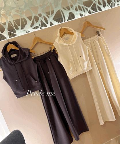구름 핀턱 나시 후드 와이드트레이닝 set ( 2color )