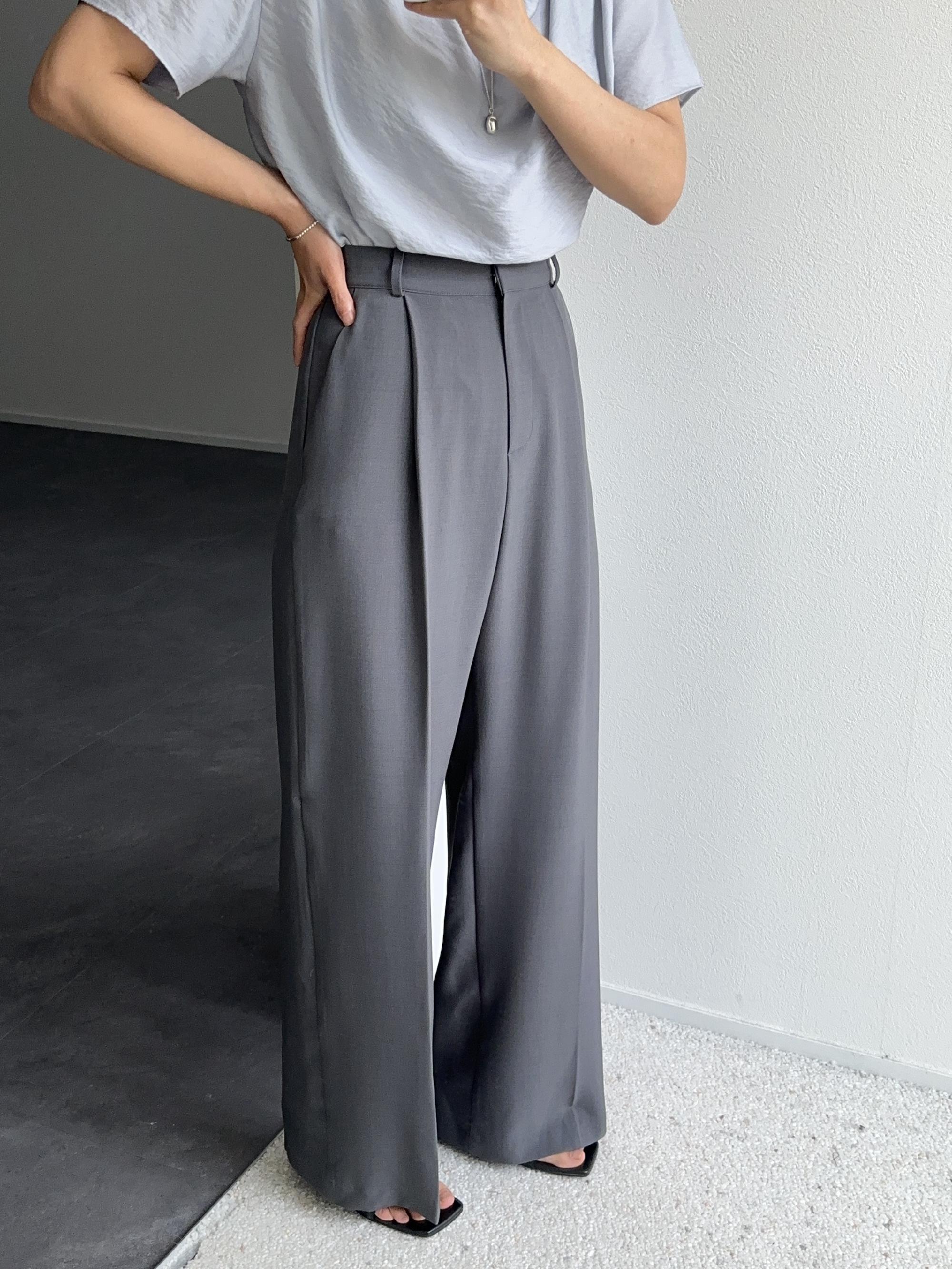 [당일발송 밤s] 푸림 여성 여름 하이웨스트 핀턱 롱 와이드 슬랙스