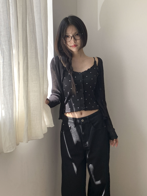 [40%할인/EIGHT MADE🤎/SET가격/간절기템] 퓨린 도트 나시 슬리브리스 가디건 세트 2color