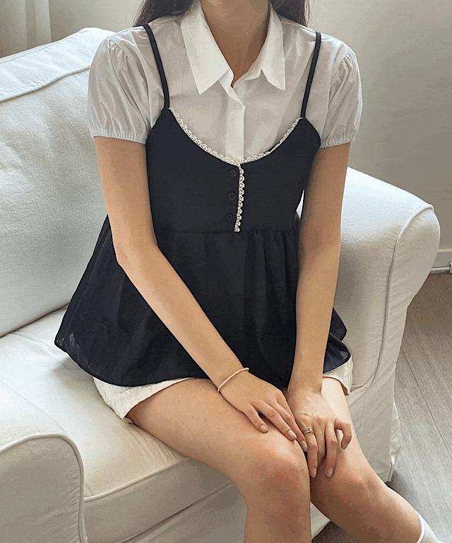 퓨아vt 레이스 블라우스 민소매 탑 슬리브리스 프릴 플레어 뷔스티에 끈나시(3col)