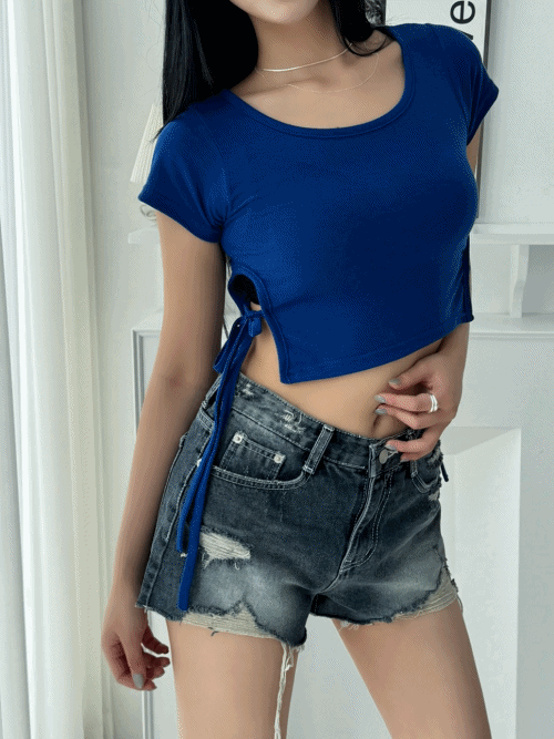 [무대의상/대학축제/워터밤/흠뻑쇼🌊] 사이드 트임 리본 크롭 반팔-T [舞台衣装/大学祭/ウォーターバーム/しっとりショー🌊] サイドスリット リボン クロップ 半袖-Tシャツ